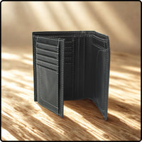 Organise your essentials with this practical leather trifold wallet. Featuring 10 dedicated credit card slots, a spacious note section, and a secure coin pocket, it keeps everything you need within easy reach. Crafted from quality leather, this wallet combines durability with smart design—perfect for those who value both functionality and style. Slim enough to slip into your pocket, yet thoughtfully structured to hold everything important.