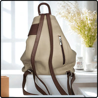 Large Pebbled Leather Lock Closure Backpack - VPR248-KHAKI/TAN