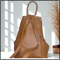 Large Pebbled Leather Lock Closure Backpack - VPR248-TAN
