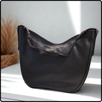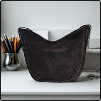 Rounded Suede and Leather Shoulder Bag with Double Buckle and Stud Detail-SL03-CHOC