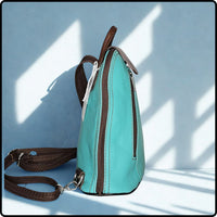 Small Soft Leather Backpack - VPB14-TURQUOISE/BROWN